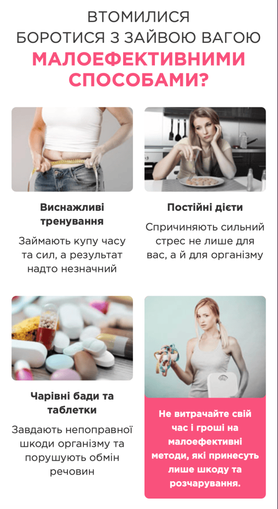 Сподобалось, що не треба дієт і підрахунків. Просто клеїш і все. Живіт став менш «надутий», їсти хочеться рідше.